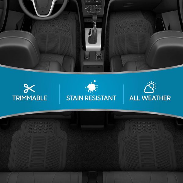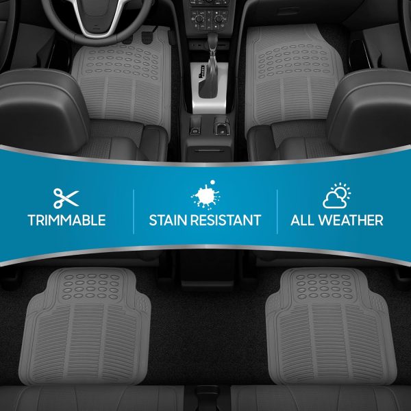All Weather Rubber Floor Mats for Car SUV & Truck – 4 Pieces Set (Front & Rear), Trimmable, Heavy Duty Protection (Grey), 1 Count (Pack of 1)