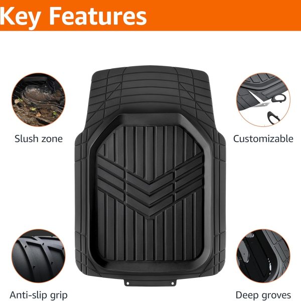 3-Piece All-Weather Heavy Duty, Full Set Rubber Floor Mats for Universal Fit in Cars, SUVs, and Trucks, Black, Trim to Customize